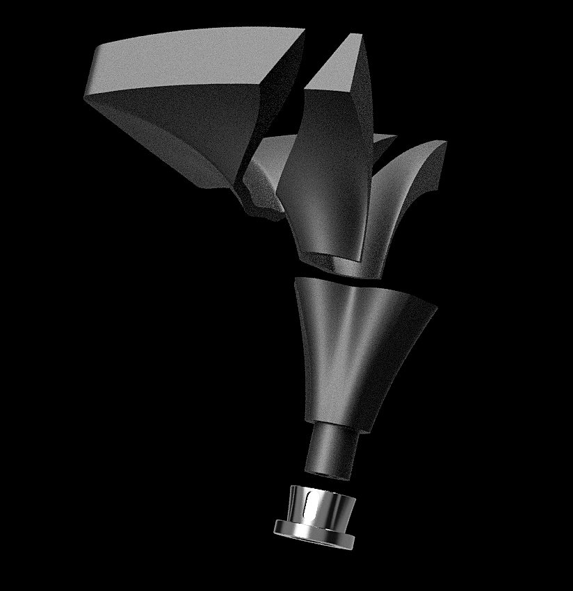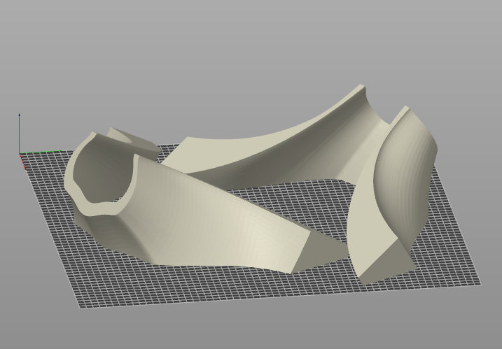 Each kit is designed as a three-part assembly. The mouth rim can be fabricated either as a separate component (potentially from a different material) or integrally with the main body — both versions are included. The driver mounting flange is provided as a separate part. How the parts are further subdivided to fit the available printer size is left to the builder. One support-free division is illustrated in the following picture; additional subdivisions are naturally possible.