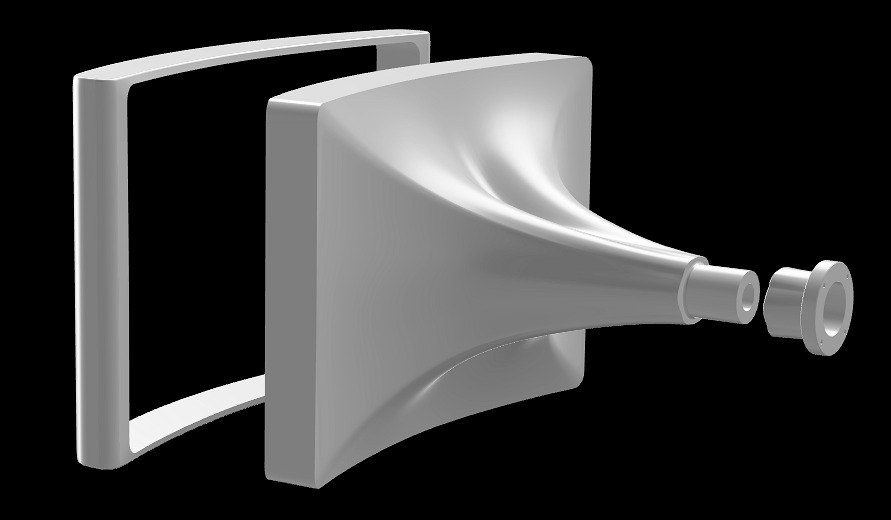 STL files are included because 3D printing the horns from those parts remains a perfectly viable option — particularly when a large, high-quality printer is available. At the same time, all kits also contain STEP files, allowing the horn designs to be readily adapted to any other manufacturing process as needed. The (printed) horn is intended to be used free-standing, supported at three points: two beneath the mouth and one below the driver flange (rubber feet work effectively). If a very heavy compression driver is used, the driver should be supported instead.